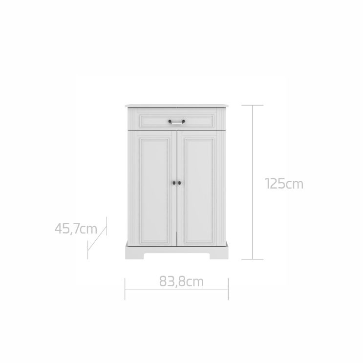 Matmenys: aukštis: 125 cm, gylis: 43,6 cm, plotis: 83,8 cm.
